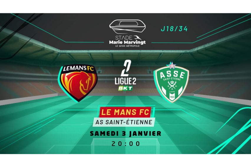 LE MANS FC reçoit l'AS SAINT-ÉTIENNE au Stade Marie-Marvingt samedi 03 janvier à 20H pour le compte de la 18ème journée de Ligue 2 BKT.