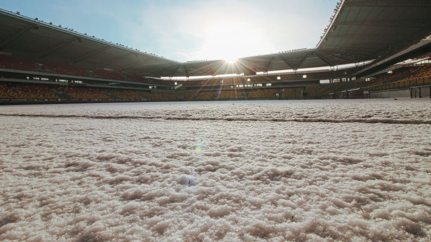 Ce voile blanc, aussi éphémère que spectaculaire, rappelle que le stade vit au rythme des saisons. Loin de son effervescence habituelle, il s’est momentanément laissé contempler dans une atmosphère plus calme, presque hors du temps.