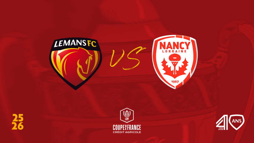 La magie de la Coupe est de retour au Mans ! Huitième-de-finaliste face au PSG la saison dernière, notre équipe recevra NANCY (Ligue 2 BKT) en 16es de finale de l’édition 2025-2026. Rendez-vous le dimanche 11 janvier au Stade Marie-Marvingt, en « sang et or », pour tenter ENSEMBLE de rejoindre de nouveau les 8es (coup d’envoi à 18h).